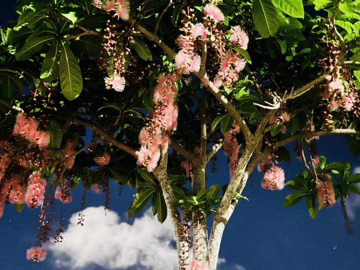 休憩中、あるコンビニの隣にあるお家の塀からサガリバナが下がってたので、相棒と外に出て匂いをかいでうっとりしながら話ししてたら、そこのお家の方が出て来たので、お喋りうるさかったのかな?って怒られると思いオロオロしてると、お家の方ニコニコしながら『どうせ、咲いてる花は朝で終わるから』ってちぎって、サガリバナを私たちにくれました♪︎♪︎(*´▽︎`*)ノ゙
