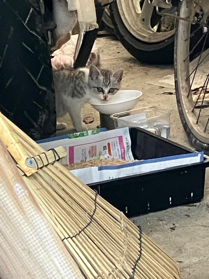 先々週の大雨の後、庭で仔にゃんの叫び声。