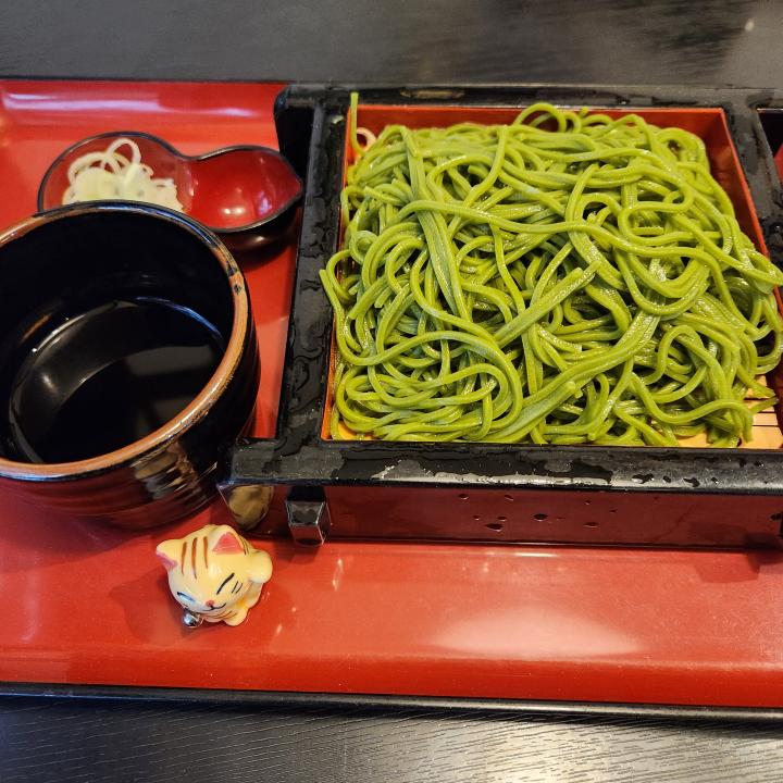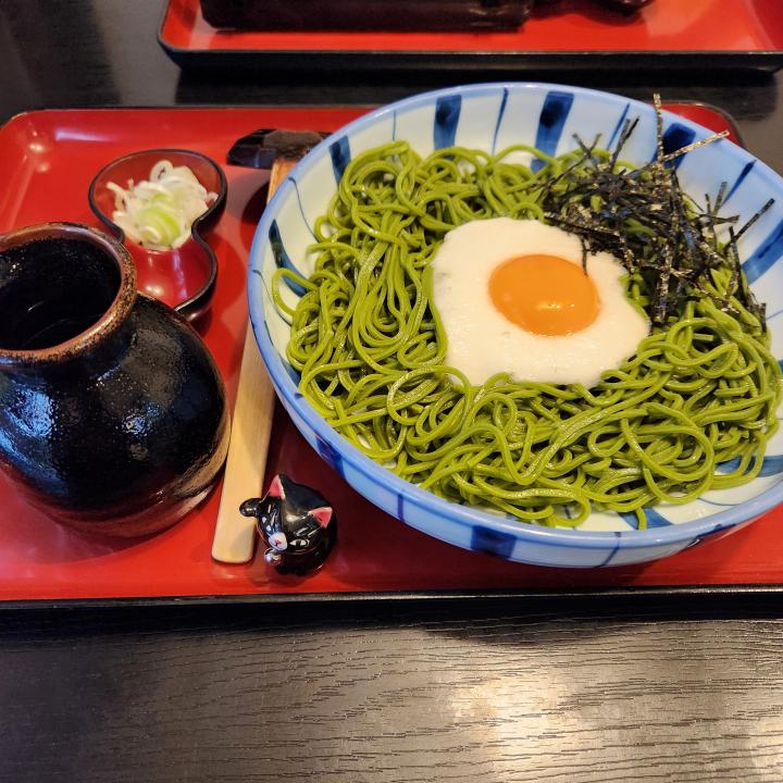 [うに] 目にも鮮やかな緑色の茶そば😊