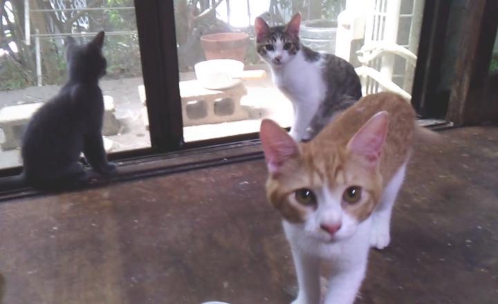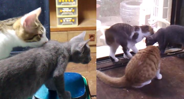 子猫は部屋に入る早々、シャーシャーと他の猫達を威嚇しました。