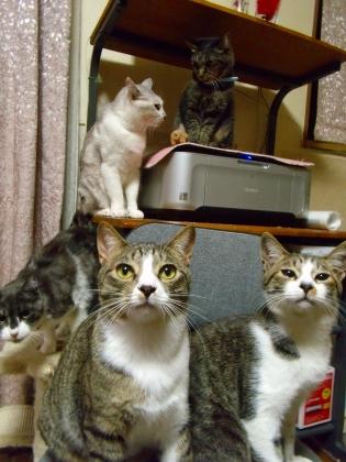 先日猫写に投稿した『記念写真』ですが、後で気付いたらちょうど猫写投稿50枚目で5匹のニャンズの写真で記念になって一人で喜んでました。