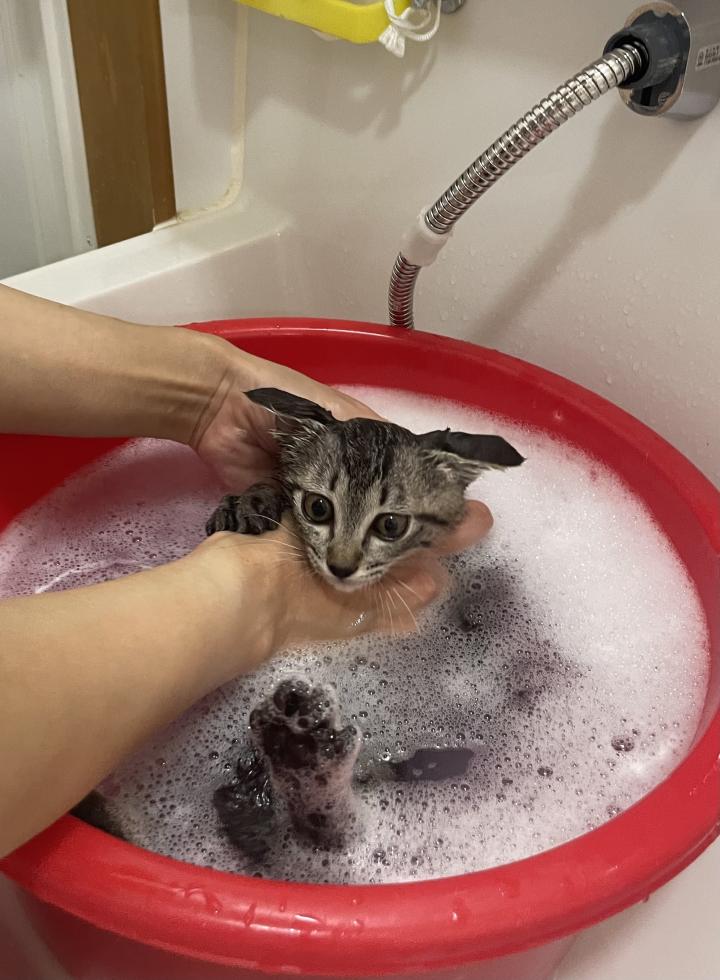 保護当初肩に怪我をしていた子猫。