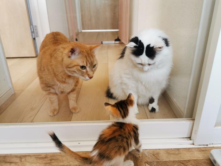 やってきた当日はお兄ちゃん猫たちざわざわ。
