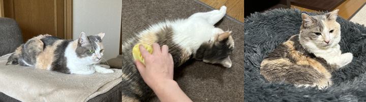 ソファーで過ごしたり、ブラッシングされたり、一人で寝たり。