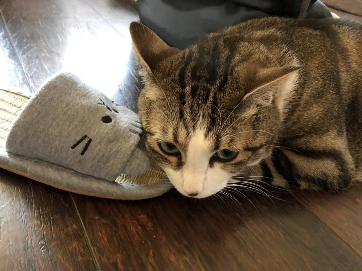 かーちゃんのスリッパにスリスリして