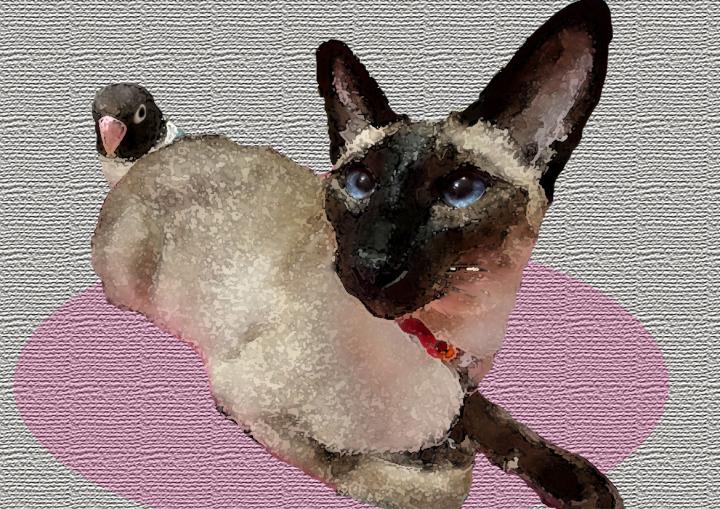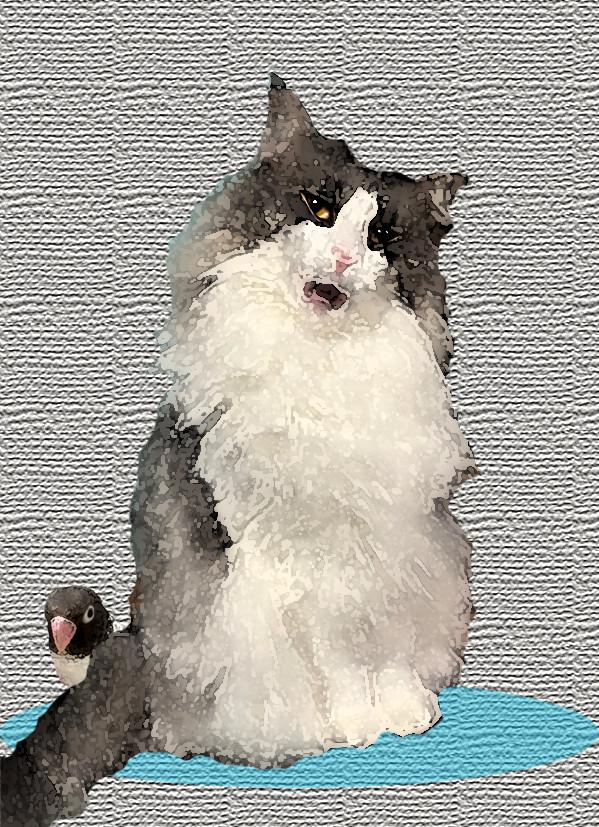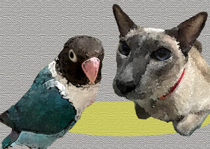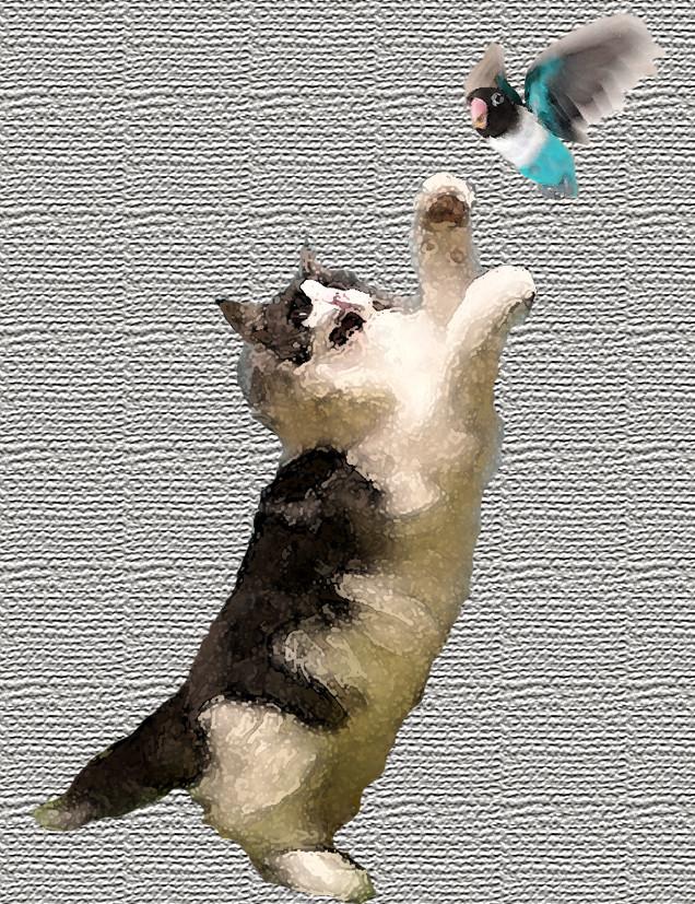 ルビィ😻「ウチにいた‼ 楽しく猫と遊ぶ幸せな青い鳥!」