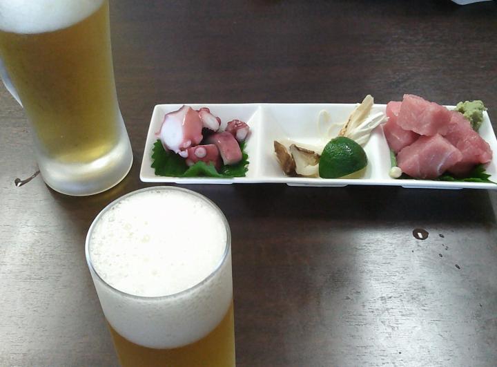 新鮮なマグロ、タコブツ、真ん中は松茸、秋なんだよな~