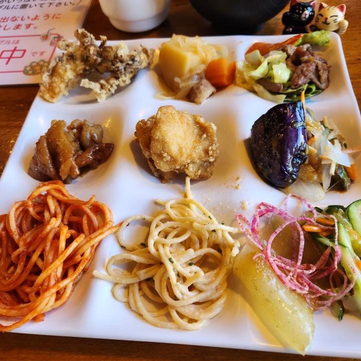明太子スパ、ナポリタン、鶏唐揚げ、