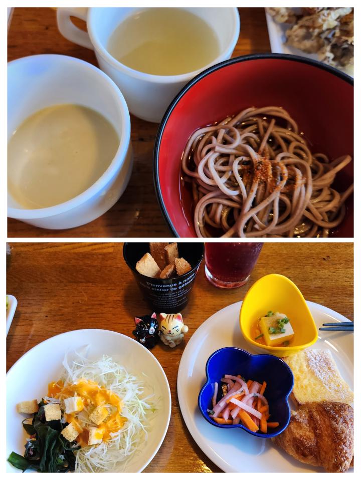 ナスみそ、野菜炒め、さしみこんにゃく、