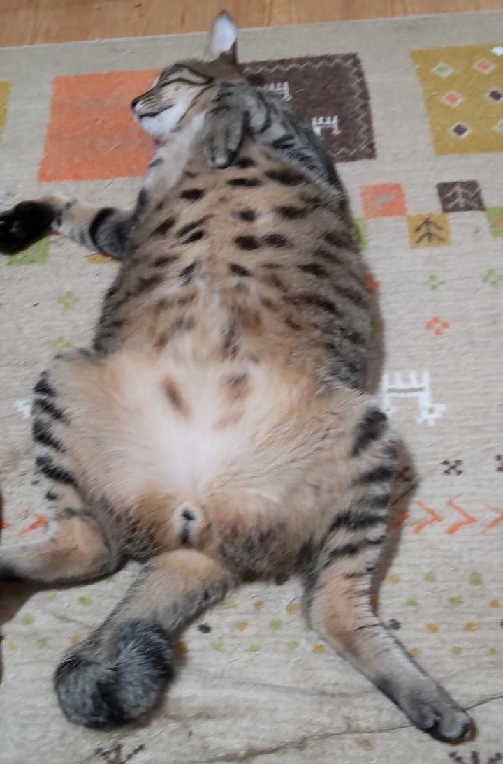 子供の頃から私のお腹の上に乗るのが好きだったけど、1歳になった頃から乗らなくなった。おとなになったからな〜と思っていたけど、テレビを見ながら、一緒にゴロゴロしてると、そばに来てお腹に乗っかってくる。😁