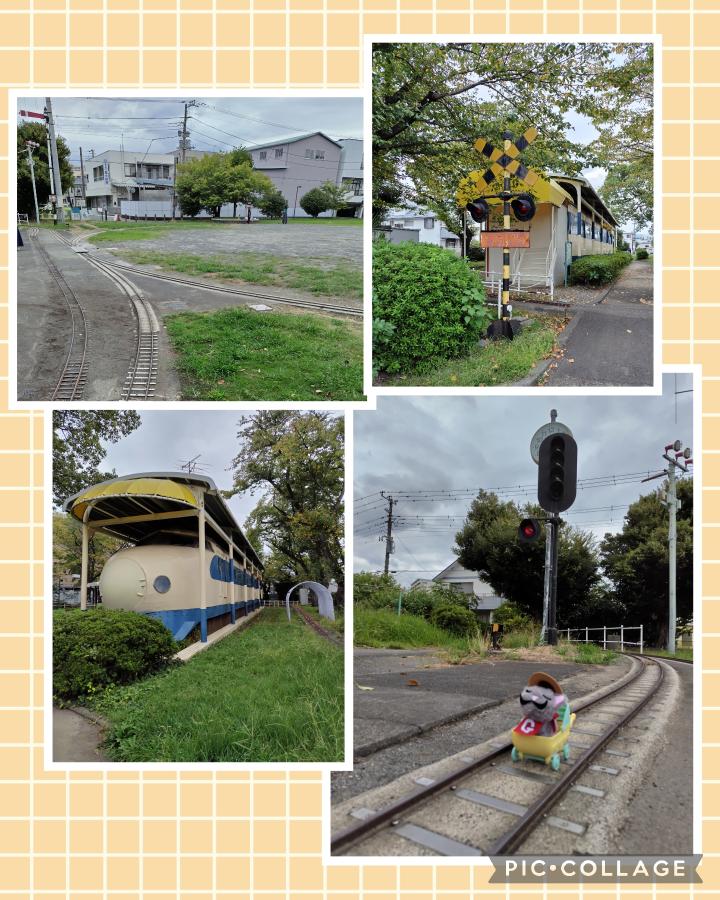 ミニ鉄道の線路や踏切などがあり、