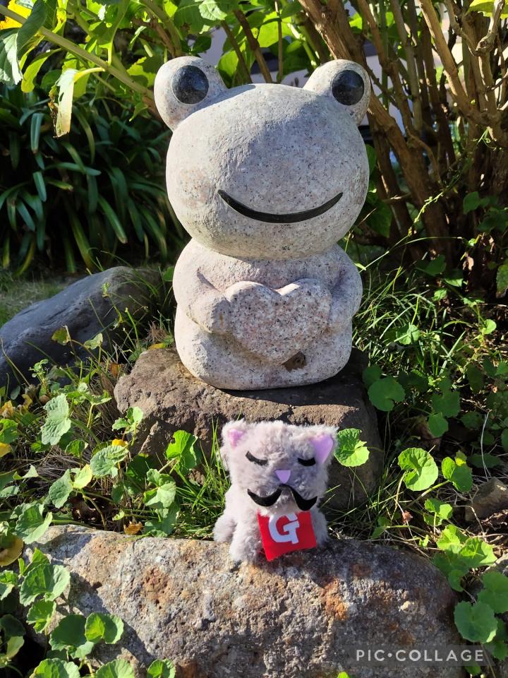 敷地内にあったカエルさんとパチリ!📸(笑)