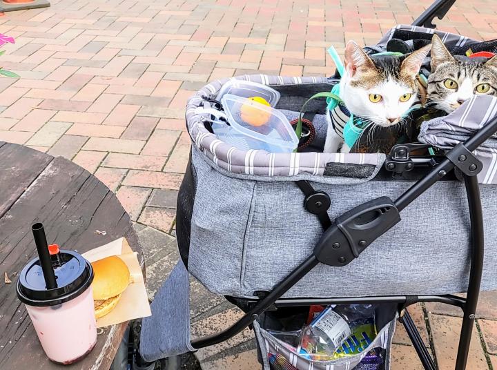 キッチンカーで買ったハンバーガーとタピオカイチゴミルクでお昼ご飯にしました✴