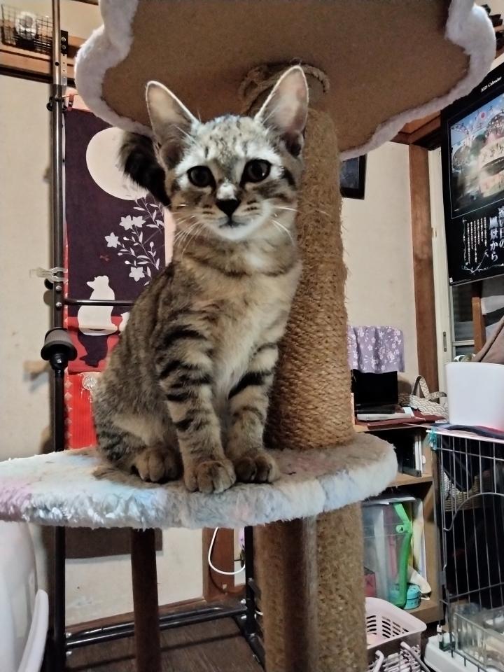 キャットタワーから観察中、そこから何を観察してるのかな?
