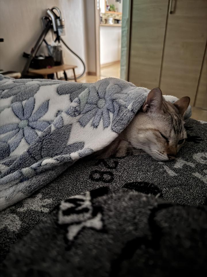 暑くて私もキララも布団蹴っ飛ばして伸びてます🤣