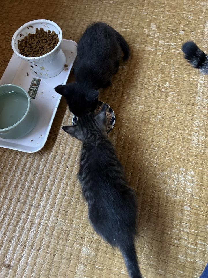 ミーちゃんとソ-くんは離乳食たべるけど他の子はまだ。