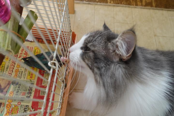 麻花瑠🐱「ブルボン🐤、水浴び~(*^-^*)」