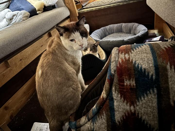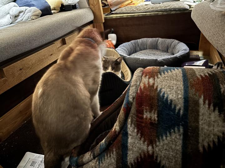 こたつの中の(まだこたつ布団かけてない)白が使うベッド。