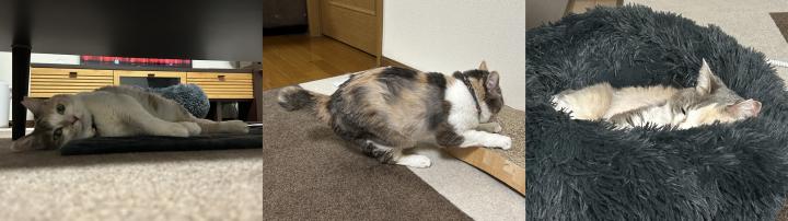 くつろいだり、爪を研いだり、先に就寝してたり。