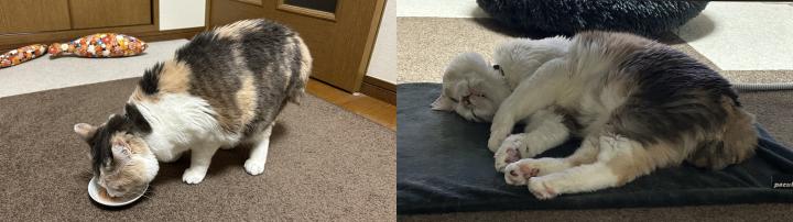 サプリ入りのちゅ~るを食べたり、気持ち良さそうに寝てたり。