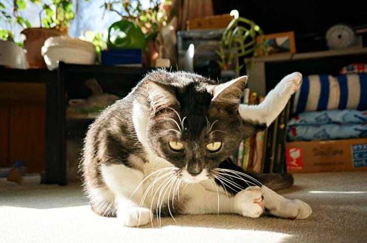 おちりのお手入れ中を写したら一瞬固まってこんな事に。