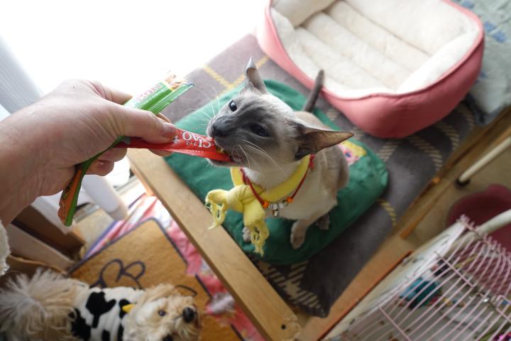 👩「最近 ぴみか🐶 なかなか入ってこないから、ちゅーるで釣ろうと思ったんだけど、わんこチームだけ、ってわけにはいかないもんねー(^-^; ジイサン先生には内緒だよ(^▽^;)」