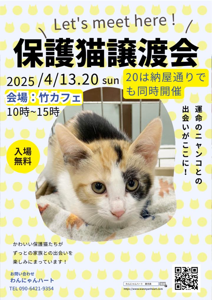 では、次は竹カフェで譲渡会開催予定です😻ぜひ、遊びに来てねー😻