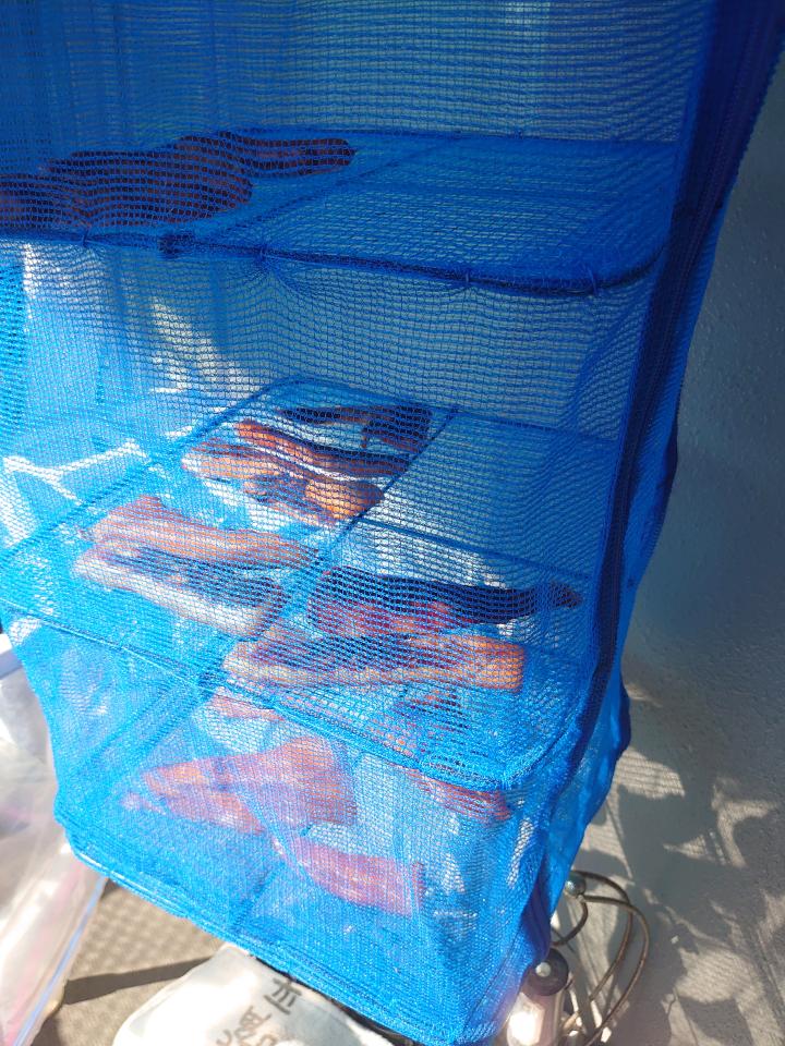 日曜日に管理釣り場から持ち帰ったニジマスも1日干して燻製の準備完了です。