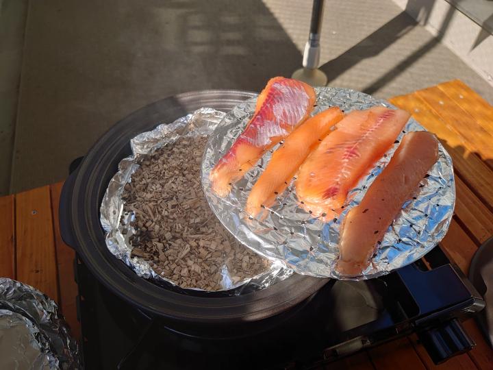 プロセスチーズ、ちくわ、茹でタマゴ、ベーコン、サバ、牡蠣、ホタテなんかを燻製にしても良さそうです。