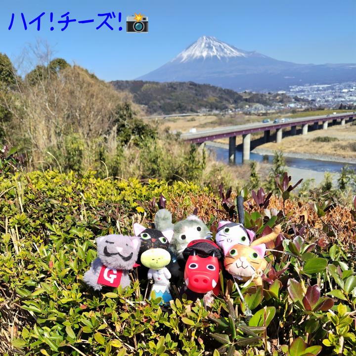 富士川サービスエリア下りのインスタマスコットキャラクターの、「ベコやん」と「ゆきおマン」と一緒に