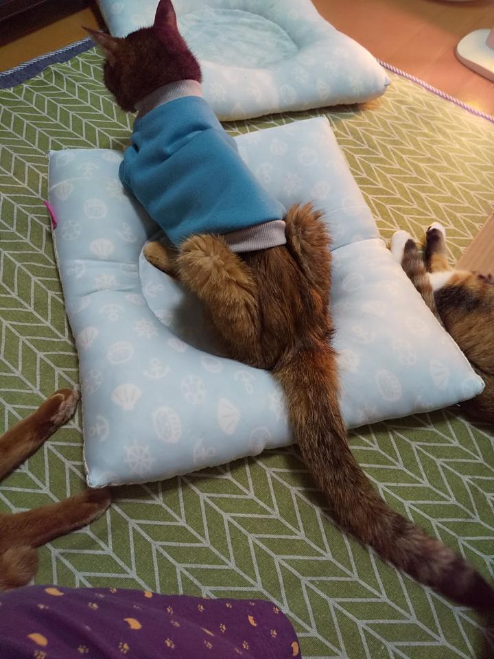 更年期のせいで飼い主はあまり寒いとは感じないのですが、猫達はまだまだ寒い様子です、というか雪が降ったし当たり前ですよね😇