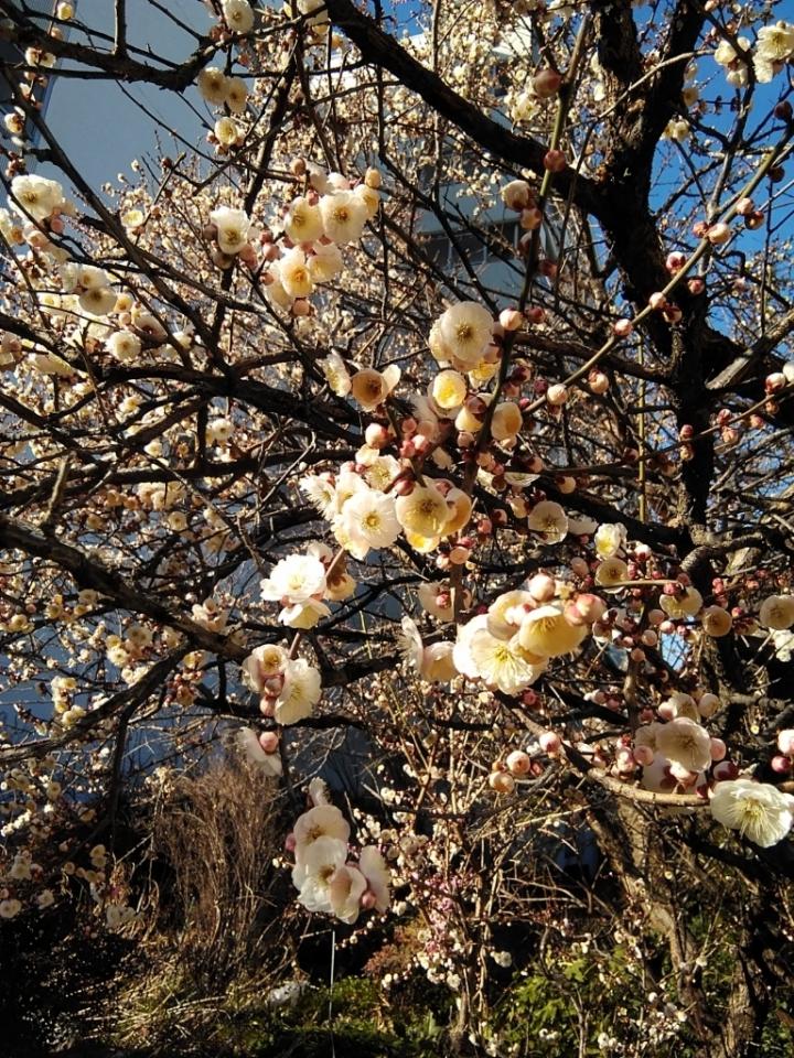 近くの団地に植えられウメです。品種名は分かりませんが、とても