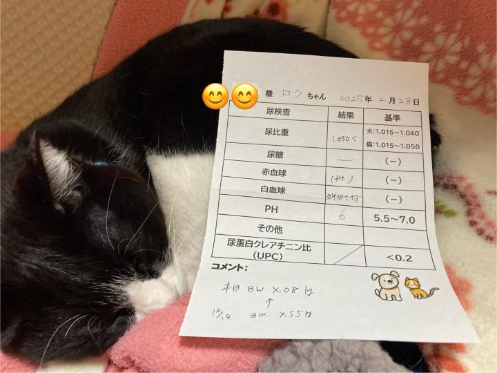 ★体重→膀胱炎治療のため、昨年12月に計測した体重よりも500g減でした。(もっと減っていたかと思っていたのに。)