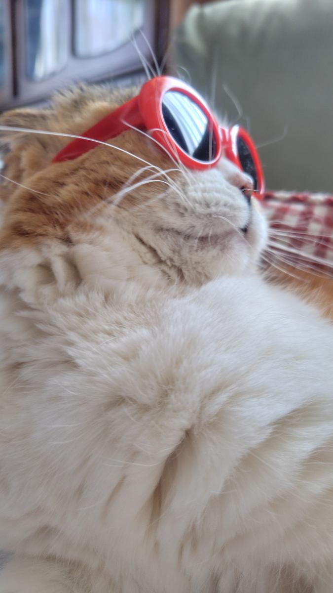 さて、そのむーちゃんの倉庫を整理してたら、100均で買ったペット用のサングラスが出てきて。