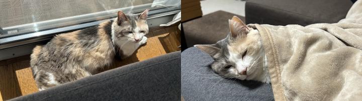 ひなたぼっこしたり、膝の上でウトウトしたり。