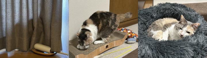 窓の外を気にしたり、爪を研いだり、先に就寝したり。