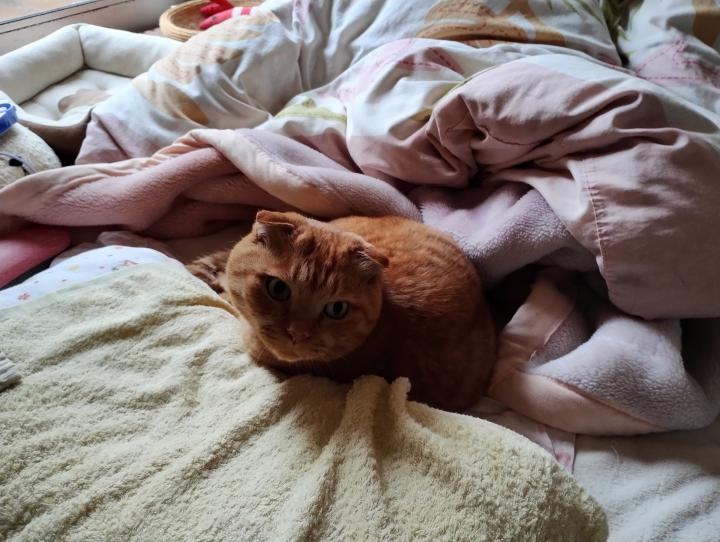 また、おとうちゃんの部屋の机の上かな?(エアコンの暖かい風がくる場所😹)と思ってた。