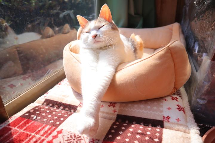 時々薪ストーブの薪を入れに部屋に行くと、みにゃさまも気持ちよさそうに日向ぼっこしてました♪