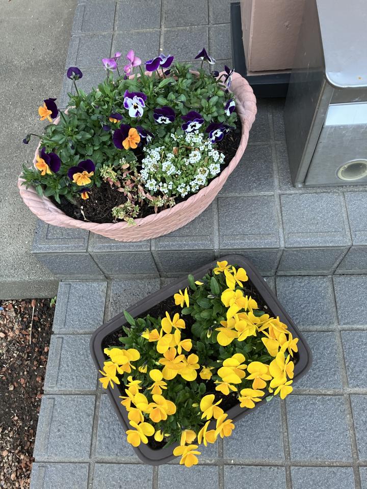 玄関のプランター、入院前は花が少なかったのに、雨の恩恵と気温⤴️でたくさん