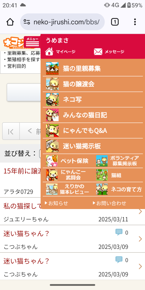 ネコジルシで「掲示板」へのアクセス経路が無くなっている事。