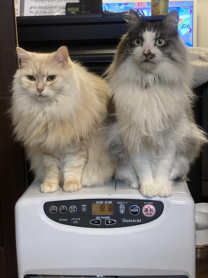 ちゃーと、にゃっさん、400グラムしか体重が違わない。ちゃたろう、おデブかな?にゃっさんが痩せてる?