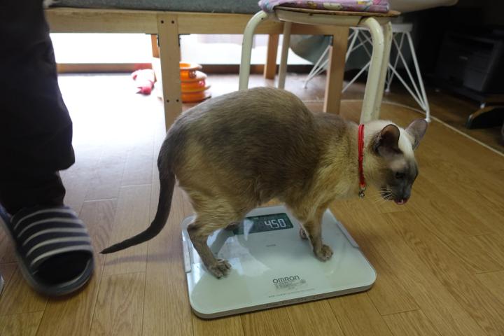 ルビィ😻「ヒヒッ、夕べ 2階で ほげ丸🐱の ゴハン食べちゃったけど、4.50kgなら、まあまだ(≧▽≦)」