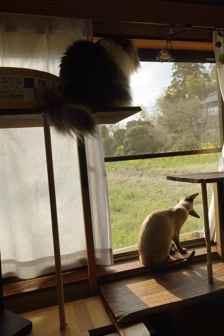 散歩から帰ってきて、ご飯を食べて、ニャンコたちの爪を切って、庭に出たら 丁度♂が帰ってきて・・・(._.)