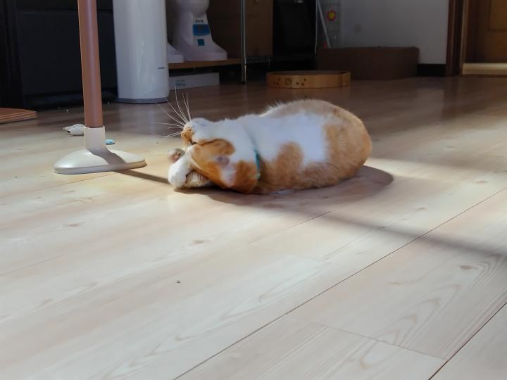子猫用の噛み噛みオモチャでハイテンションな茶虎🐯オジサン😁