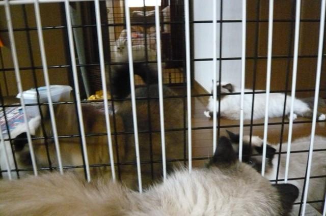 各部屋に入れても、猫たちは 顔合わせられる、そうなっているんです^-^