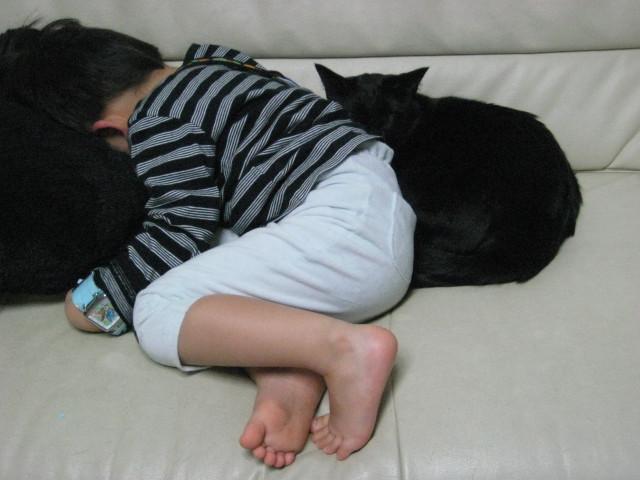 ココは知ってか知らずか、慰めるつもりでいたのか、息子のお尻を枕に…(-_-)zzz