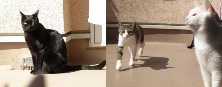 写真はテラスで遊ぶ猫達です。朝、洗濯物を干す為にテラスを開けると
