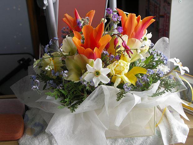 それを室内に持ち込むと・・・バーーっと咲いちゃうので、アレンジメントを作り直しました。