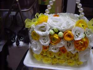 何故か「フラワーアレンジメント」をもらって帰ってきました。