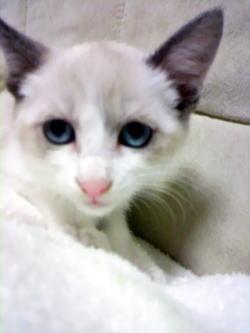 シャムミックスっぽい感じで、目が青くて尾がリンクスポイントです。